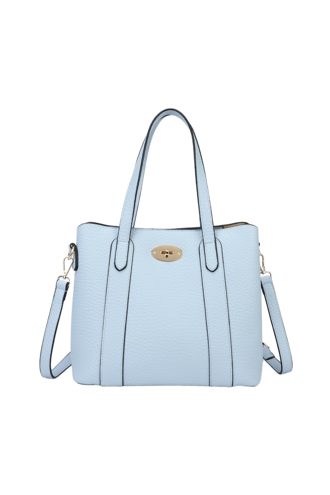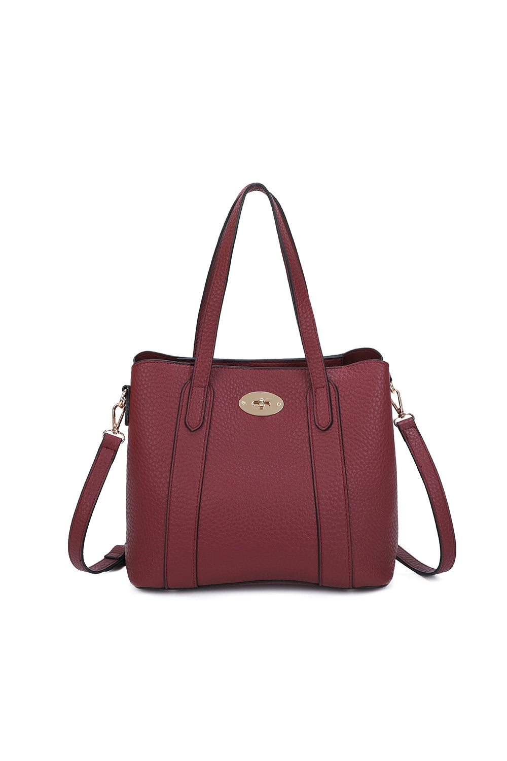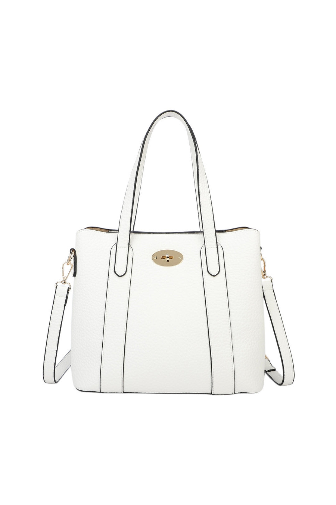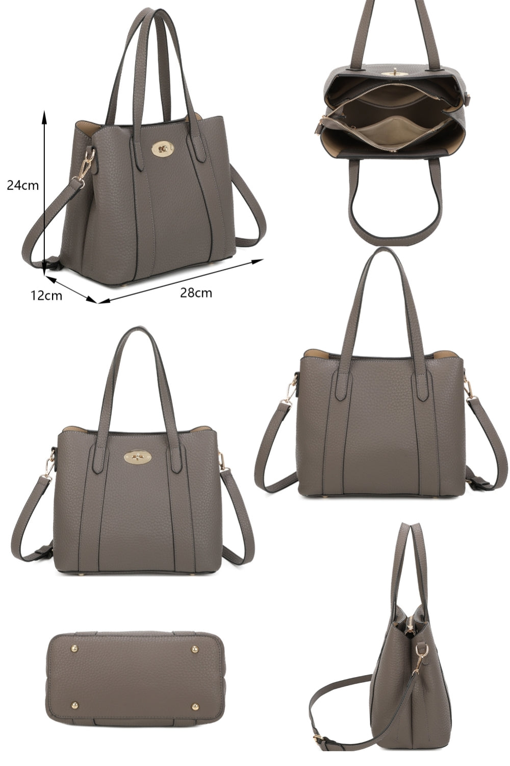 This structured handbag combines elegance with everyday functionality, featuring a sleek silhouette and refined details. Designed with a spacious interior and secure twist-lock closure, it keeps your essentials organized and accessible. Versatile double handles and a detachable strap allow it to be carried by hand, over the shoulder, or crossbody for effortless style.