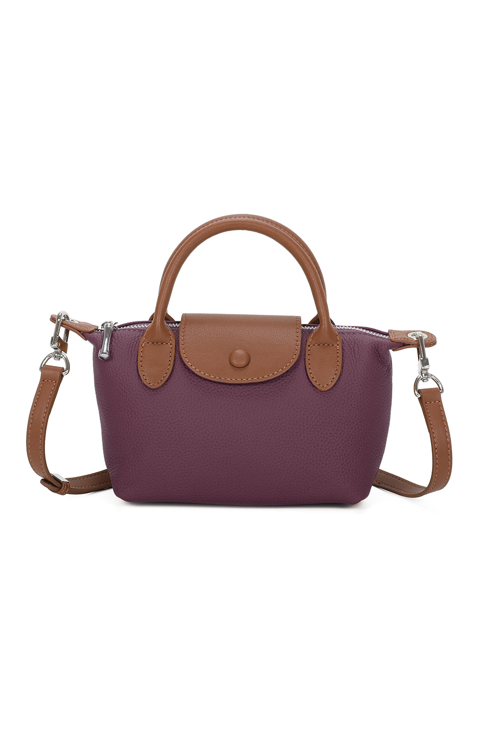 The Ria Leather Mini Shoulder Top Handle Bag is the epitome of elegance and versatility. Crafted from premium leather, this compact yet stylish bag features a sleek top handle and a detachable shoulder strap, allowing you to switch seamlessly between hand-carry and shoulder wear. Its minimalist design includes a secure zip closure and a spacious interior for your daily essentials, making it perfect for both day and night. The Ria bag's high-quality leather promises durability and a timeless appeal, making it an essential addition to any wardrobe. Whether you're heading to a brunch or a formal event, the Ria Leather Mini Shoulder Top Handle Bag complements any outfit with a touch of sophistication.